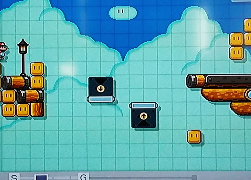 The "S" and "G" buttons at the bottom show how big the level is, how big it could be, and easily let you reshape the size of the level. That said, the goal of the level must always be on the far right, and players can't really make a level in which you go past the goal, then backtrack, or put a goal to the left of the start.